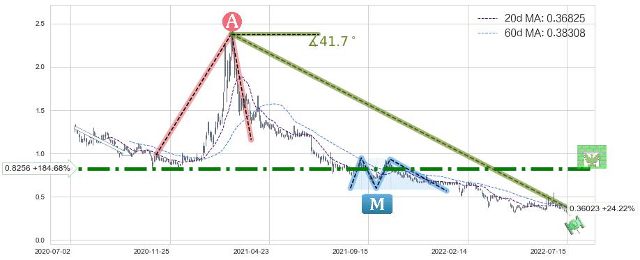 🦴 长线均值回复组合短线趋势跟踪[强阻力信号]2021-02-25-2022-07-20下跌趋势依然成立(下跌趋势跟踪依然存在),短线价格略微上行反弹(均值回复猜想),即将接近下跌趋势提供的未破位阻力价格:0.36023。