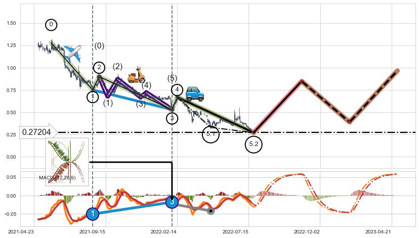 ➢ 5.1: 预测当前第5浪位置(2022-04-27, 0.33000),仍然有下跌空间