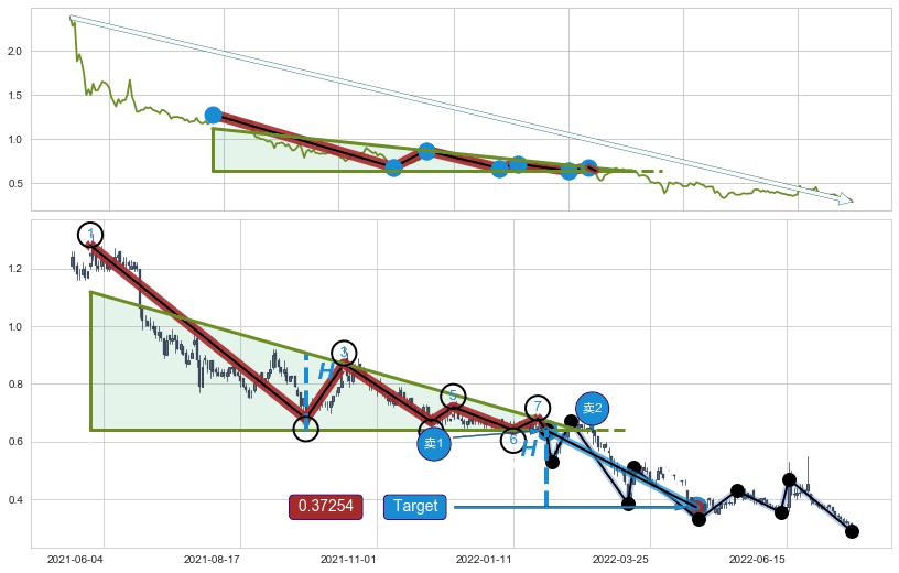 ➢ 【卖1】: 激进型 卖点→(2022-01-27: 0.6400 )形成突破下降三角形整理【整理】形态
