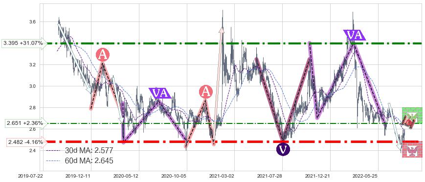 ♘ 阻力价格位2.651,可信任强度40.49%,距离最后交易2022-08-12形成的收盘价格2.590相差 +2.36%