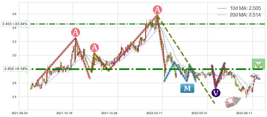➢ 最小【整理】第一目标价格→(2022-08-24: 2.301 )