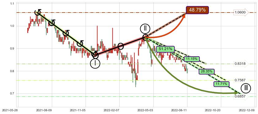 ➢ 循环浪继续向下【最低】位置(2022-12-09, 0.6857),匹配聚类样本比例22.86%, 可能性概率11.71%