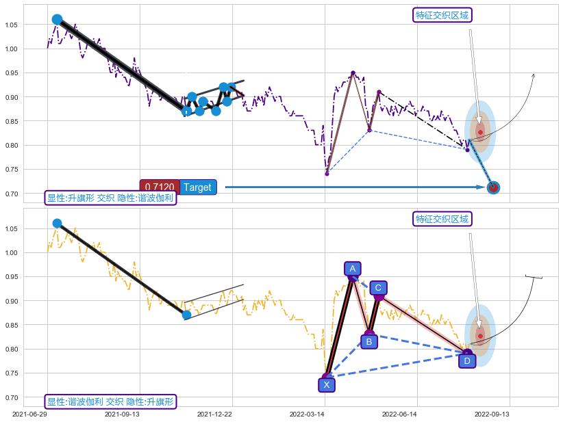 ➢ 谐波伽利属【短级别信号事件】降旗形属【长级别信号事件】长短周期组合信号事件, 短长事件长度比23.05%