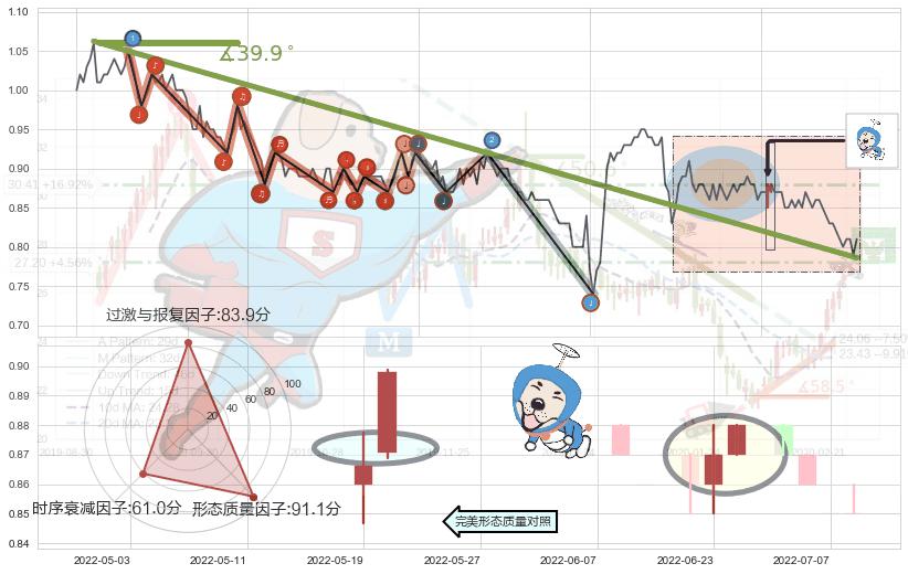 从2021-07-07至2022-03-25,共包含155个交易日,阶段股价下跌-11.34%,阶段股价变动位移路程比: 1 : 17,下跌趋势角度: 39.9
