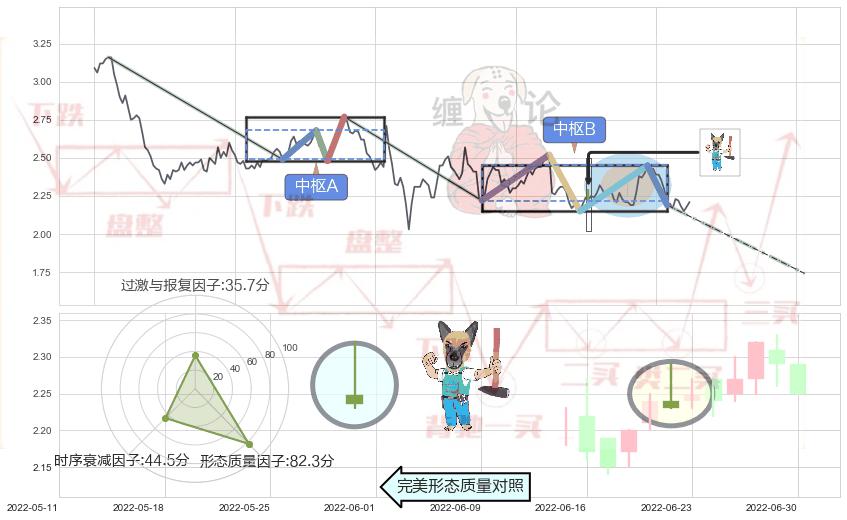➢ 下跌螺旋桨 🔜 缠论中枢点破位中枢B支撑下拉 综合量化分数:44.54 【偏空】