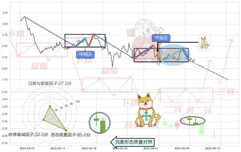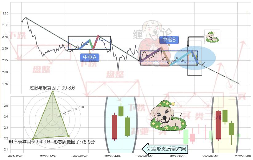 ➣ 【中枢B】:2022-04-26-2022-08-02,中枢由5笔构成,共67交易日, ZG=2.450, ZD=2.220