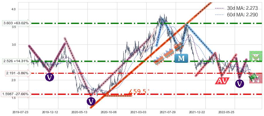 ➢ 【已确认突破】最后价格:2.210与最小【反转】第一目标价格→(2022-08-31: 1.4478 )相较: 下跌空间【中等】