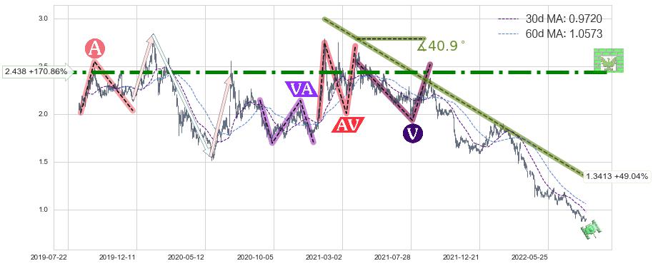 ♘ 阻力价格位2.438,可信任强度99.19%,距离最后交易2022-08-12形成的收盘价格0.9000相差 +170.86%