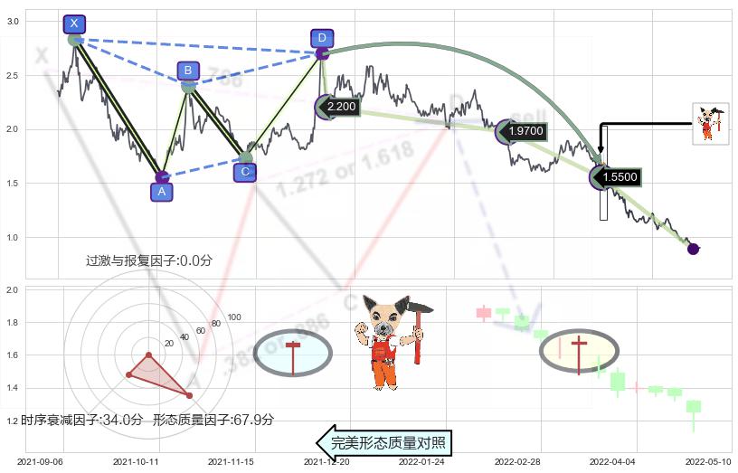 ➢ 🕰 价格走势在2022-03-14至2022-03-14期间形成锤头线(锤子线),残存影响值:1.84