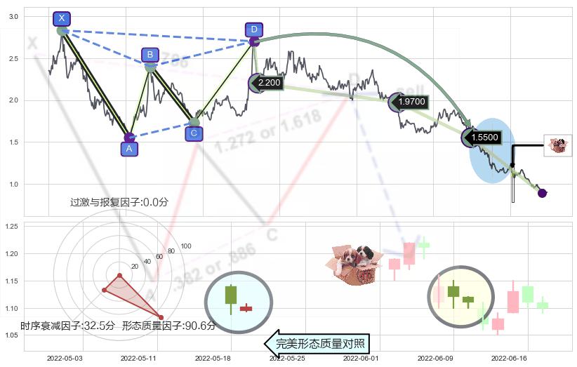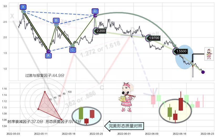 ➢ 🕰 价格走势在2022-06-09至2022-06-10期间形成底部尽头线(上山虎),残存影响值:0.90