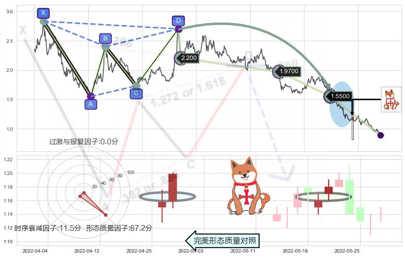 ➢ CD价格变动区间是BC的144.8%,符合形态要求