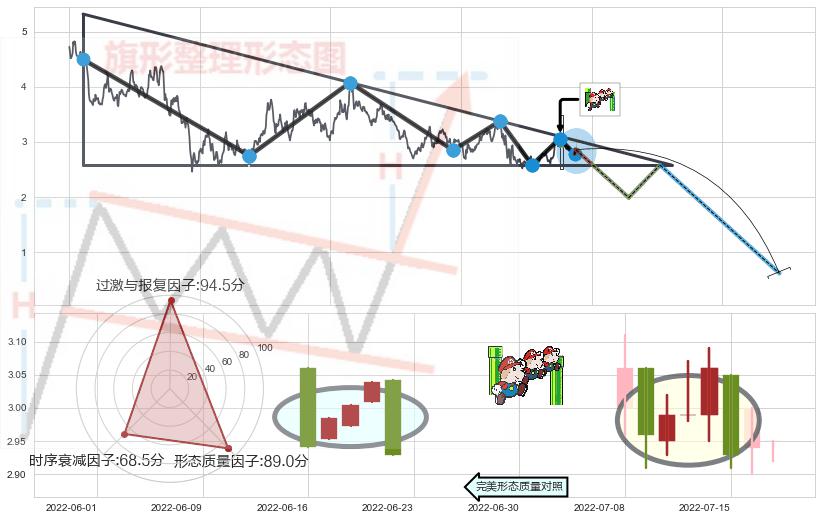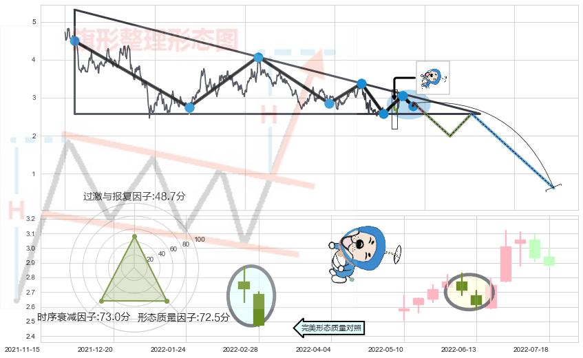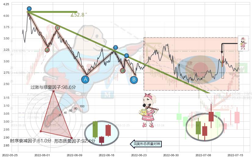 ➢ 🕰 价格走势在2022-07-11至2022-07-15期间形成下降三部曲(降势三鹤),残存影响值:-7.09
