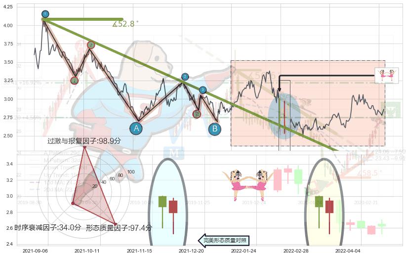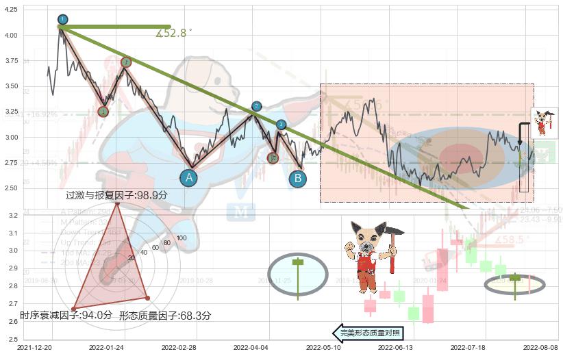 ♘ 阻力价格位4.21,可信任强度95.69%,距离最后交易2022-08-12形成的收盘价格2.860相差 +47.21%