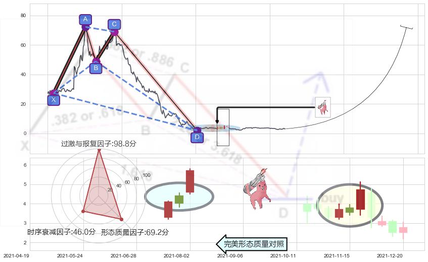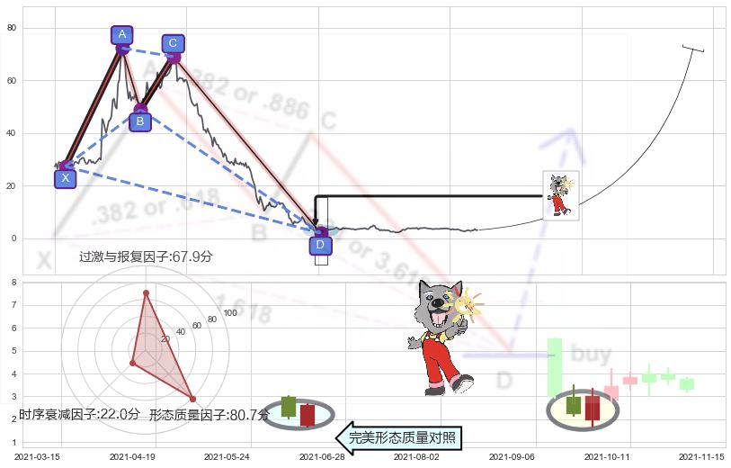 ➢ 曙光初现形态 🔜 谐波螃蟹d拐点上涨支撑 综合量化分数:53.51 【中性】