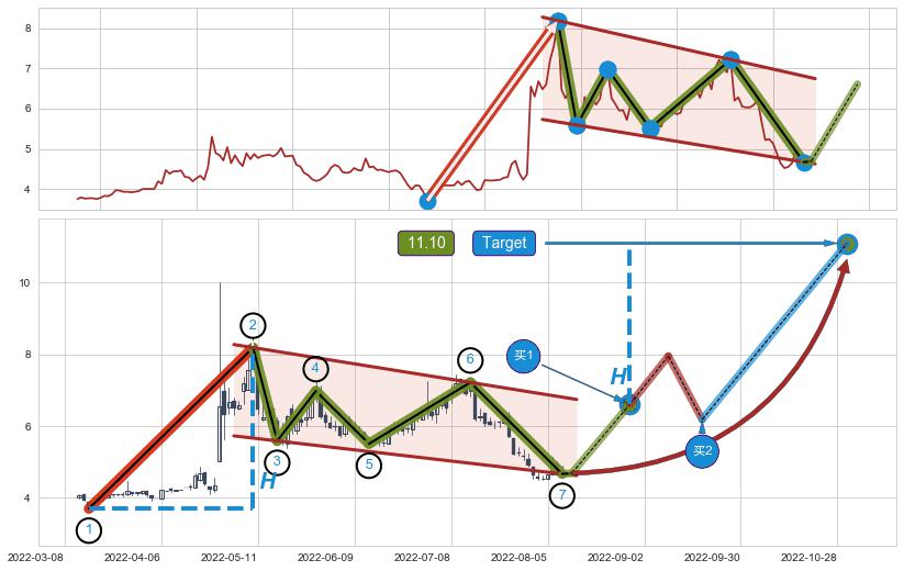➢ AI预测: 假定反转如期而至,第❸价格目标位置(2022-11-11, 8.19)