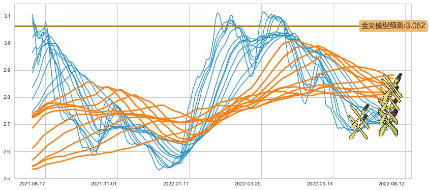➣ 90小时均线于(2022-08-10: 2.824)形成【金叉】基于【金叉历史模型】预测金叉后最高波峰价格: 3.223, 金叉后最高价格2.850,尚未达到预测最高波峰价格, 预期继续上涨