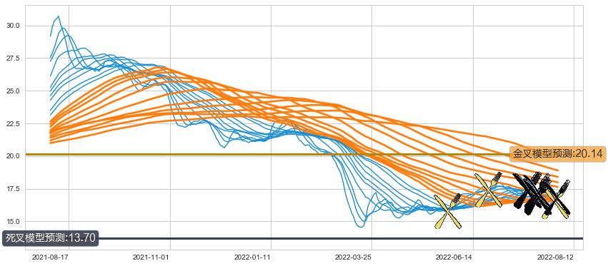 ➢ 34小时均线于(2022-07-22: 17.38)形成【死叉】基于【死叉历史模型】预测死叉后最低波谷价格: 14.81, 死叉后最低价格15.80,尚未达到预测最低波谷价格, 预期继续下跌