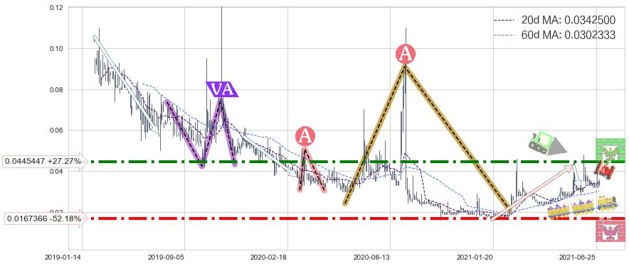 ♘ 阻力价格位0.0445447,可信任强度71.39%,距离最后交易2021-06-30形成的收盘价格0.0350000相差 +27.27%