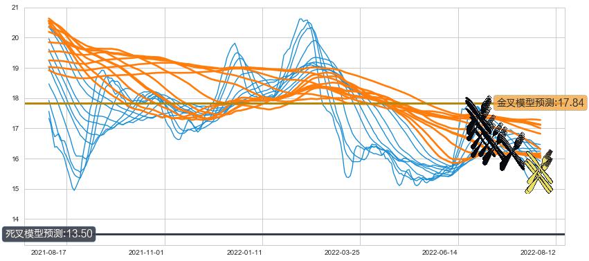 ➢ 120小时均线于(2022-06-28: 17.13)形成【死叉】基于【死叉历史模型】预测死叉后最低波谷价格: 13.73, 死叉后最低价格14.94,尚未达到预测最低波谷价格, 预期继续下跌