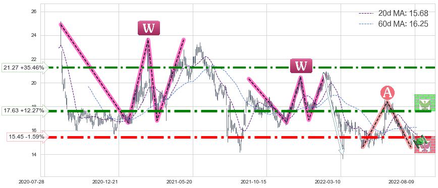 ♘ 阻力价格位17.63,可信任强度88.22%,距离最后交易2022-08-12形成的收盘价格15.70相差 +12.27%