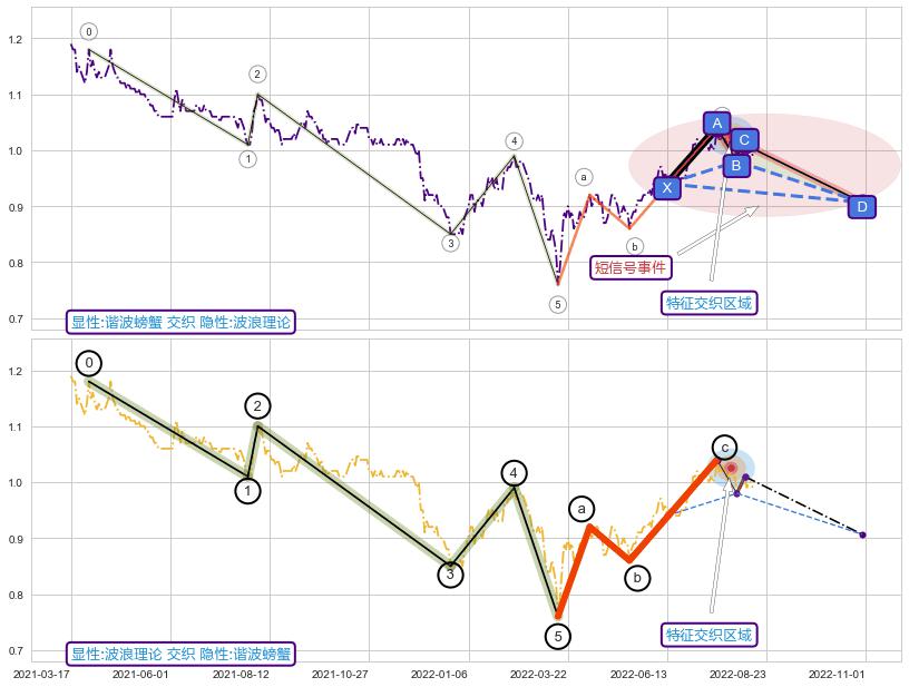 ➢ 谐波螃蟹属【短级别信号事件】波浪理论属【长级别信号事件】长短周期组合信号事件, 短长事件长度比13.88%