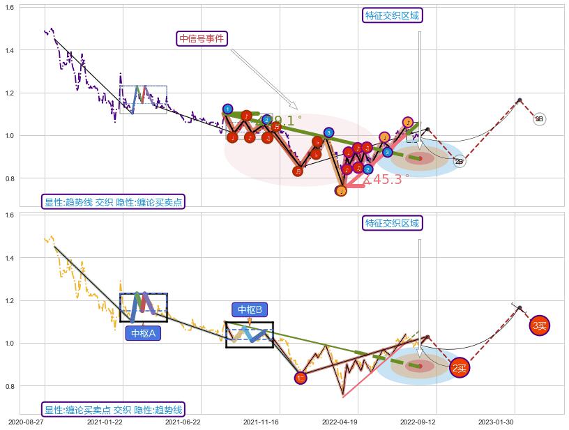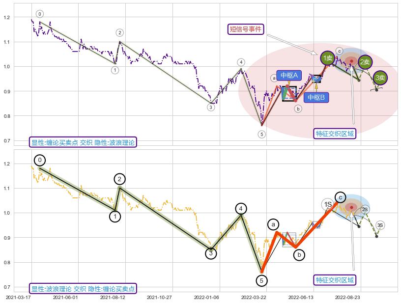 ➣ 缠论买卖点:猜想2卖持续蓄力下跌至3卖 → 下跌 → 风险信号 → 小趋势跟踪