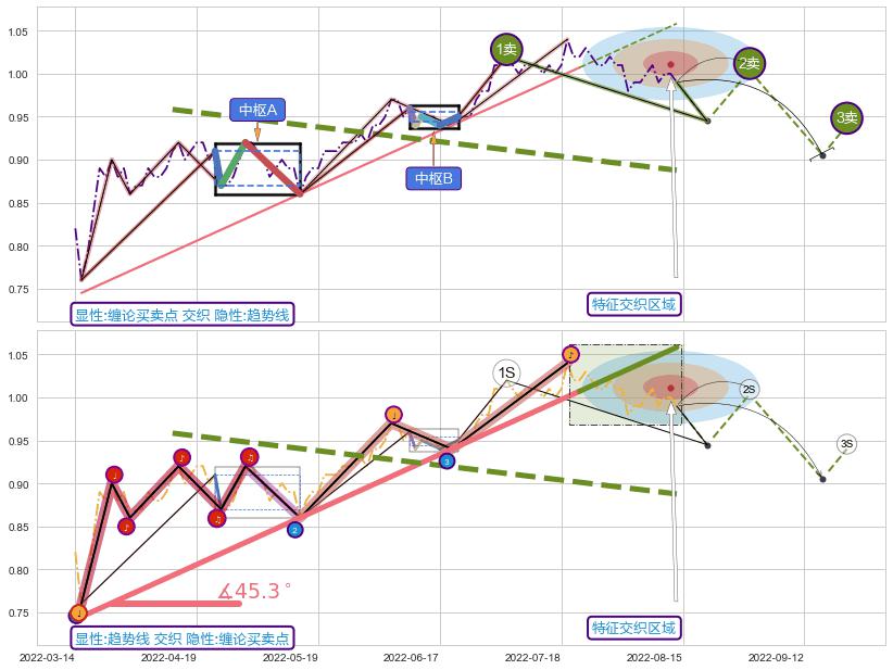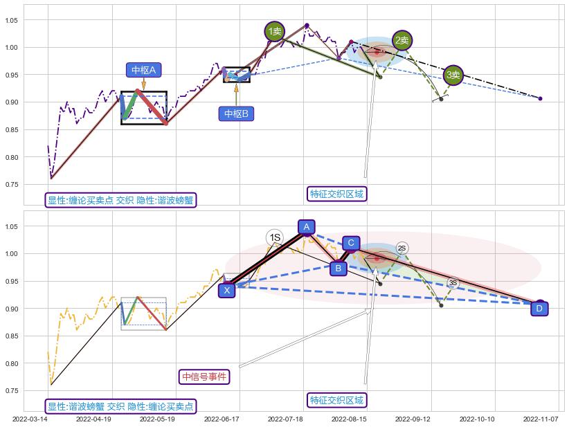 ➣ 【中枢B】:2022-06-10-2022-06-22,中枢由5笔构成,共9交易日, ZG=0.9500, ZD=0.9400