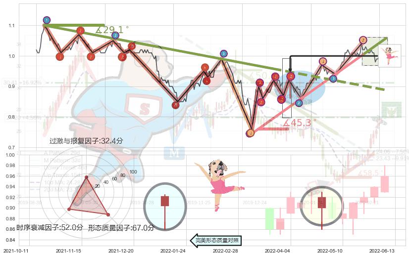 ➢ 🕰 价格走势在2022-05-10至2022-06-06期间形成低档五阳线,残存影响值:3.19