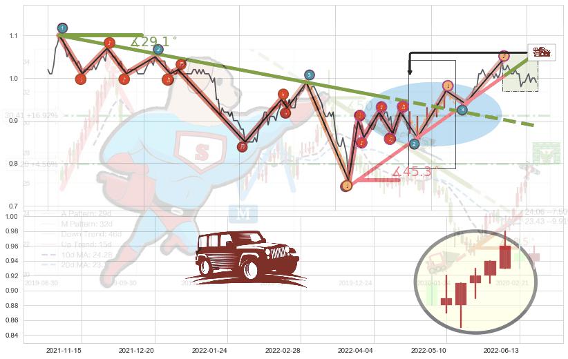 ➣ 2021-08-04-2022-04-06下跌趋势存在反转上涨[机会],其原下跌趋势的阻力位(0.8877)已被突破[强支撑信号],原下跌趋势角度: 29.1˚