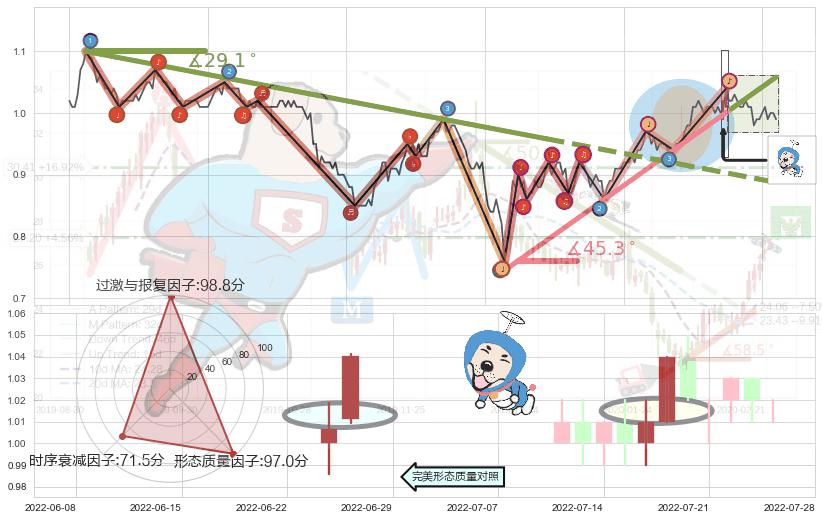 ➢ 🕰 价格走势在2022-07-18至2022-07-19期间形成上涨螺旋桨形态,残存影响值:7.80