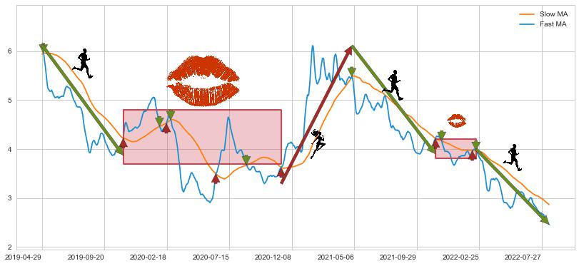 2021-11-15至2022-02-18 慢线与快线多次接触,存在上下穿越,有缠绕