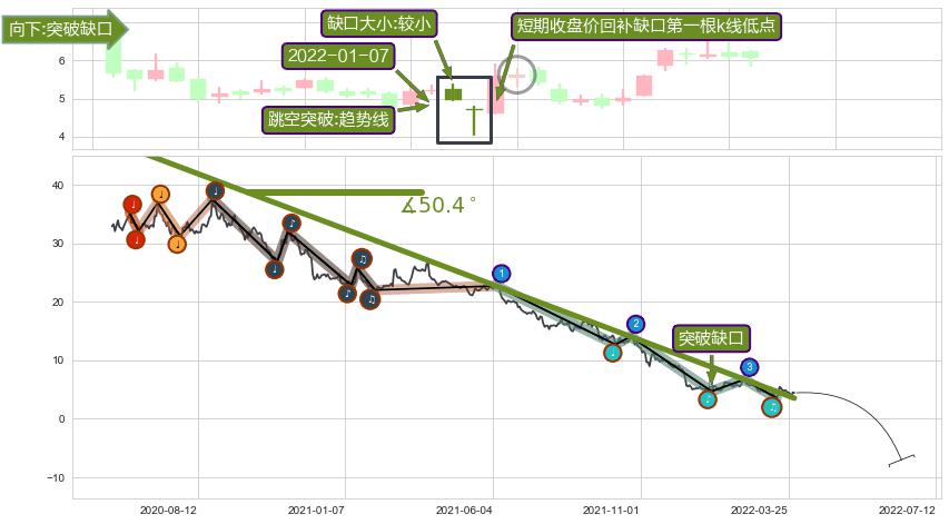 ➢ 2022-01-07形成:向下跳空【竭尽】缺口