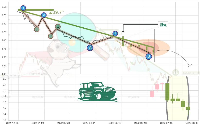 ➢ 【已达成】最小【整理】第一目标价格→(2022-03-14: 2.152 ), 后续继续【整理】下跌动力微弱,下跌较小