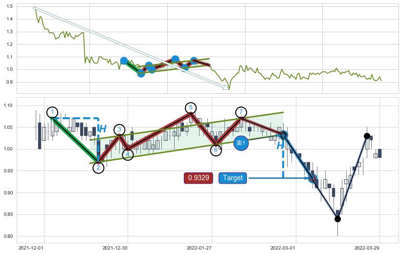 ➢ 【已达成】最小【整理】第一目标价格→(2022-03-07: 0.9329 ), 后续继续【整理】下跌动力微弱,下跌较小