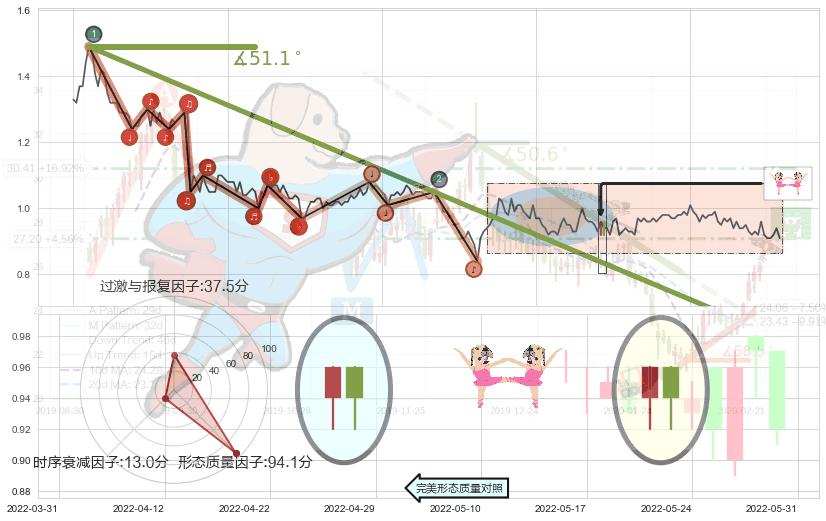 从2021-09-06至2022-07-21,共包含209个交易日,阶段股价下跌-35.94%,阶段股价变动位移路程比: 1 : 9,下跌趋势角度: 51.1