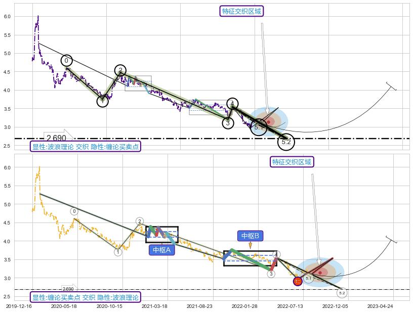 ➣ 【中枢B】:2021-09-27-2022-04-06,中枢由4笔构成,共118交易日, ZG=3.540, ZD=3.510