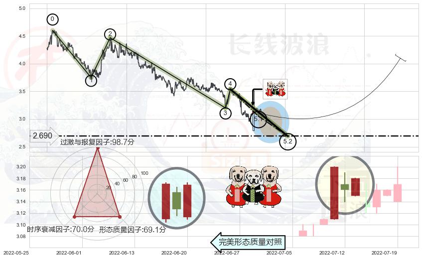 ➢ 🕰 价格走势在2022-07-15至2022-07-25期间形成低档五阳线,残存影响值:3.51