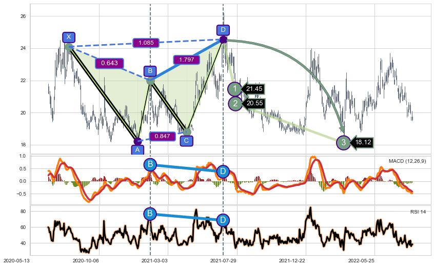 ➢ 谐波价格D点比B点高 ⤴,【MACD】指标D点比B点低 ⤵️