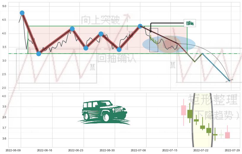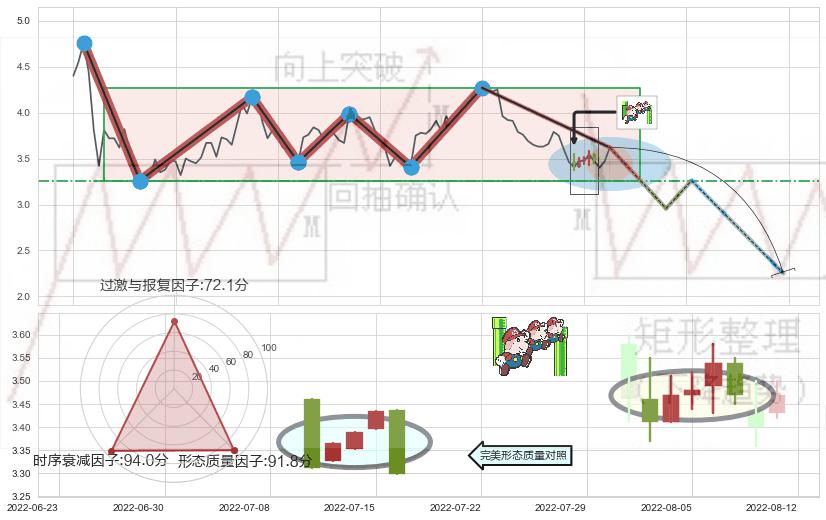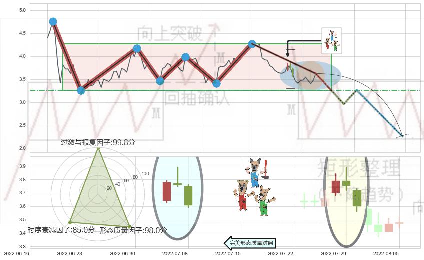 ➢ AI智能: 预测【多方力量耗尽】,矩形中继整理向下突破,预测将在2022-08-22突破矩形提供的颈线