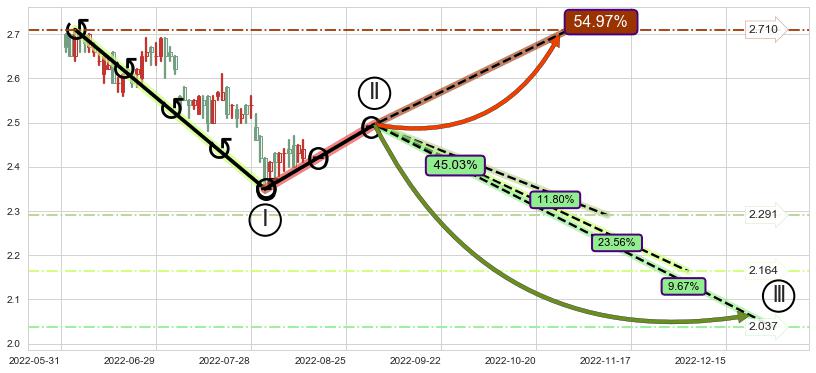 ➣ 循环浪继续向下【平均值】位置(2022-12-05, 2.164),匹配聚类样本比例52.33%, 可能性概率23.56%