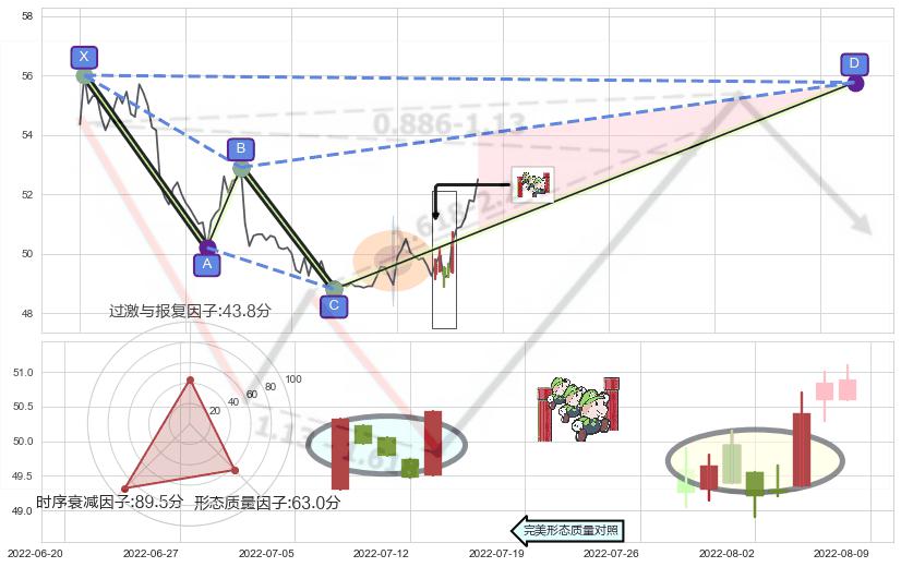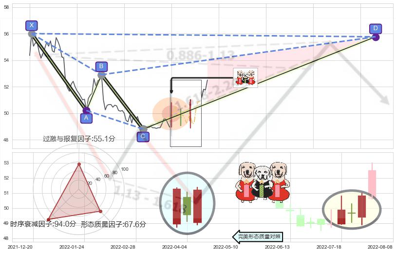 ➢ 低档五阳线 🔜 谐波鲨鱼下沉击穿c上涨拐点 综合量化分数:56.15 【偏多】