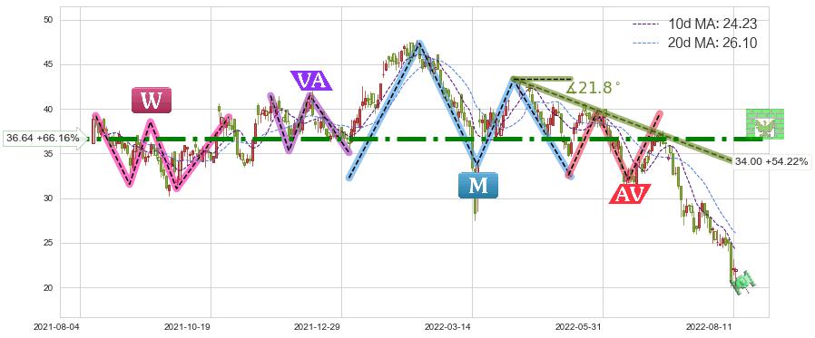♘ 阻力价格位36.64,可信任强度93.19%,距离最后交易2022-08-12形成的收盘价格22.05相差 +66.16%