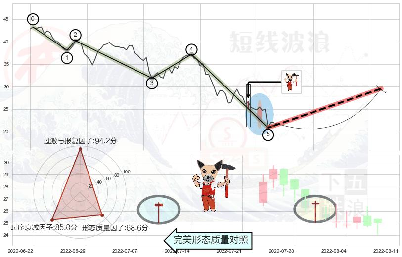 ➢ 🕰 价格走势在2022-08-01至2022-08-01期间形成锤头线(锤子线),残存影响值:6.40