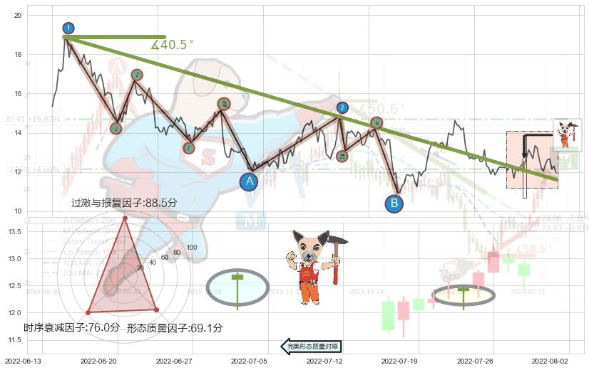 ➢ 2021-08-30-2022-06-02下跌趋势存在反转上涨[机会],虽然原下跌趋势的阻力位(11.60)已被突破,但其阻力效果尚存,原下跌趋势角度: 40.5˚