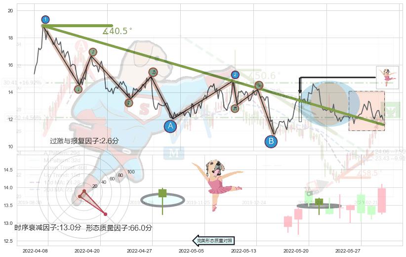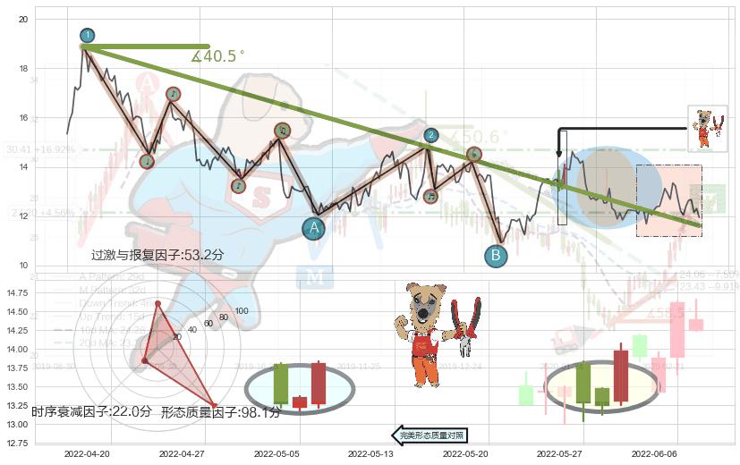 ➣ 2021-08-30-2022-06-02下跌趋势存在反转上涨[机会],虽然原下跌趋势的阻力位(11.60)已被突破,但其阻力效果尚存,原下跌趋势角度: 40.5˚