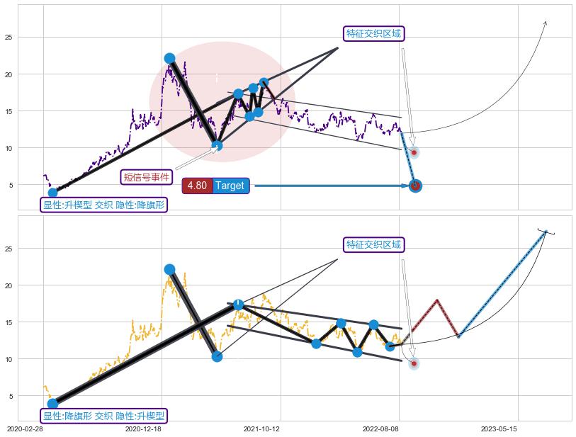 ➢ 【未确认突破,预测即将形成突破】降⚑旗形起点:2020-03-23, 预测突破点:2022-09-08,形态共608交易日