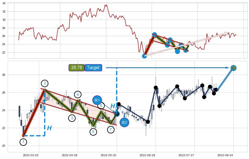 ➣ D点拟合预测价格32.31,距离最后交易收盘价格26.30相差 +22.84%