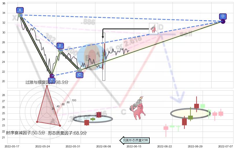 ➢ 看涨(低位)倒锤头线 🔜 谐波蝙蝠c拐点上涨支撑 综合量化分数:52.49 【中性】