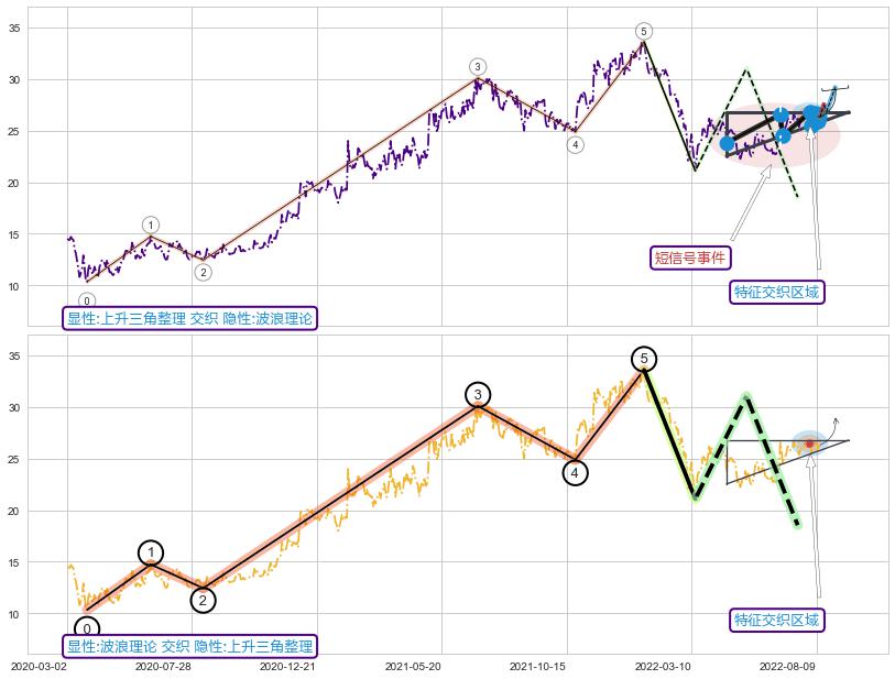 ➢ 上升三角整理属【短级别信号事件】波浪理论属【长级别信号事件】长短周期组合信号事件, 短长事件长度比13.33%