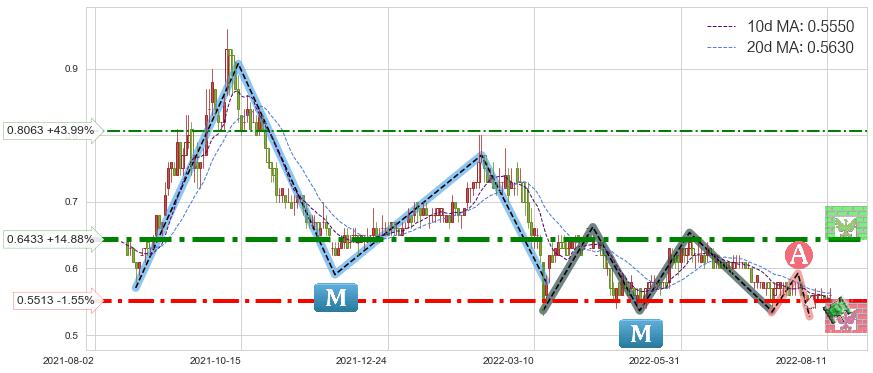♘ 阻力价格位0.6433,可信任强度89.02%,距离最后交易2022-08-12形成的收盘价格0.5600相差 +14.88%